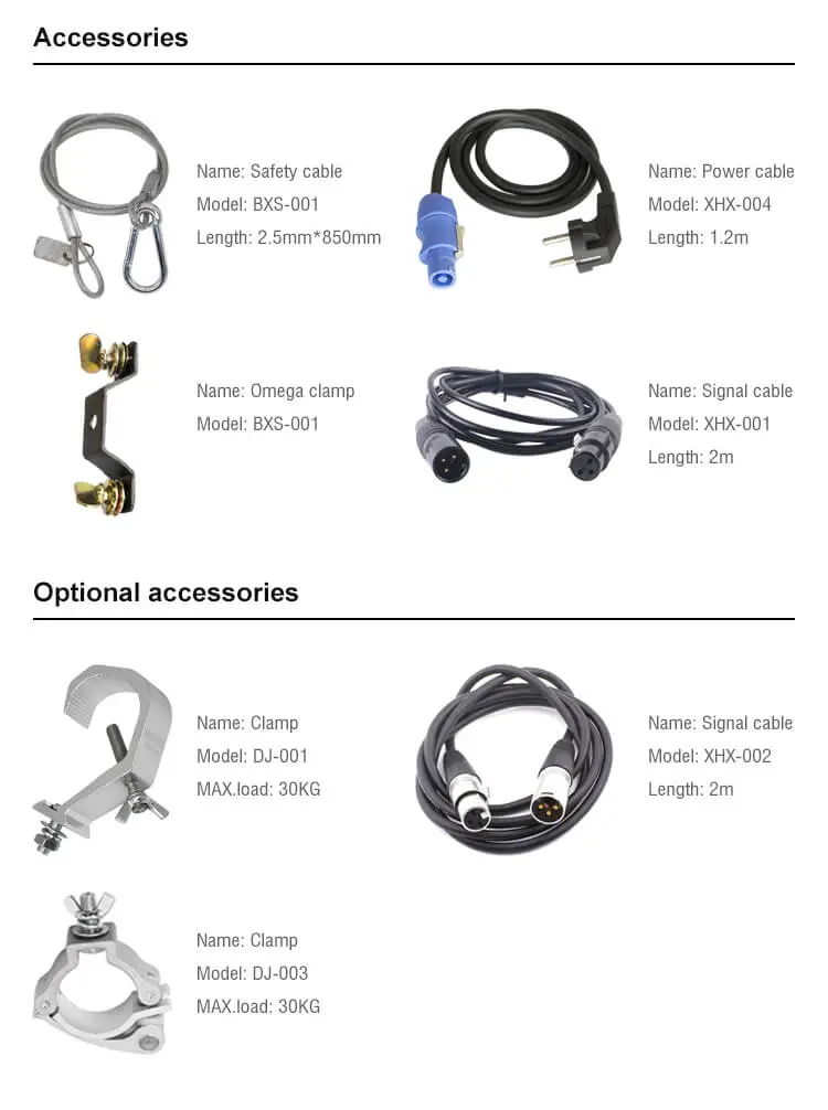 Gobo wheel: 14 gobos(8 fixed gobos + 5 glass gobos + open)